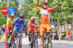 Tay đua trẻ Trần Tuấn Kiệt đã xuất sắc rút đích giành chiến thắng chặng 14 với thành tích 3 giờ 24’18’’.