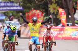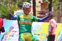 Tay đua 20 tuổi Võ Thanh An của đội Vĩnh Long đã xuất sắc "solo" ở khoảng cách 20km cuối chặng Tp Vinh - Quãng Bình để xé áo vàng, áo trắng chặng 2 Cúp truyền hình TP.HCM 2020.