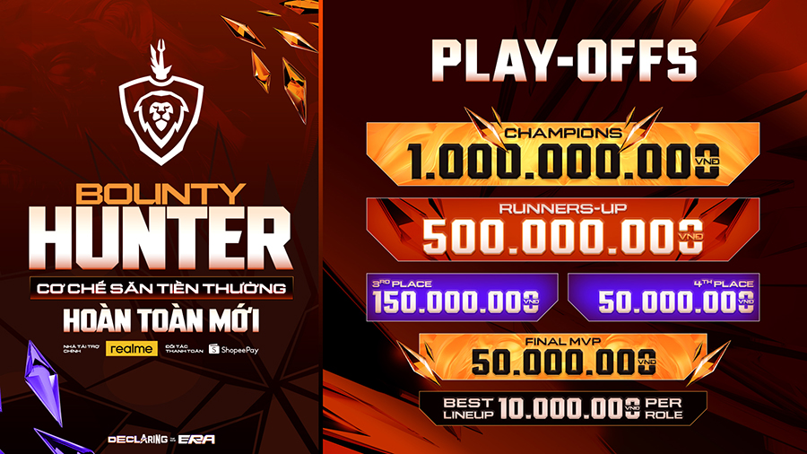 Bên cạnh Gươm và Khiên Danh Vọng cao quý, ĐTDV Mùa Xuân 2026 còn mang đến tổng giá trị giải thưởng lên tới 6 tỷ đồng. Đặc biệt, cơ chế thưởng Bounty được áp dụng nhằm gia tăng tính cạnh tranh và động lực thi đấu cho các tuyển thủ xuyên suốt mùa giải. Cụ thể: