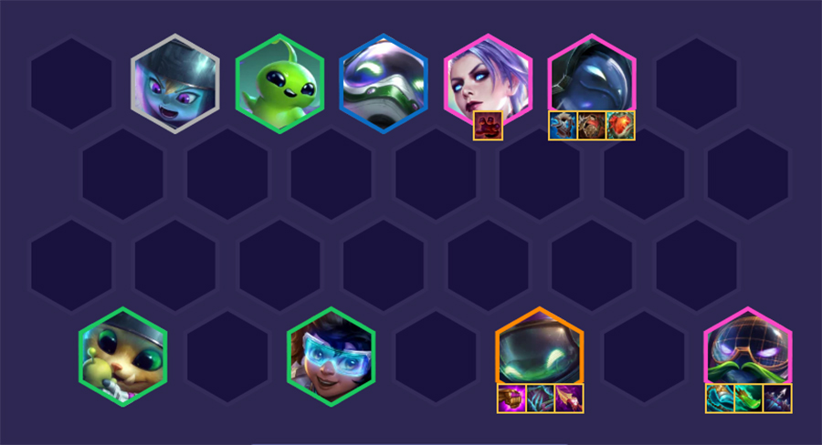 - Bard & Corki: Xếp chéo góc nhau ở hàng dưới cùng. Việc này giúp tránh bị các sát thủ hoặc kỹ năng diện rộng (như Lux hay các tướng gây dmg đường thẳng) tiêu diệt cả hai chủ lực cùng lúc.
