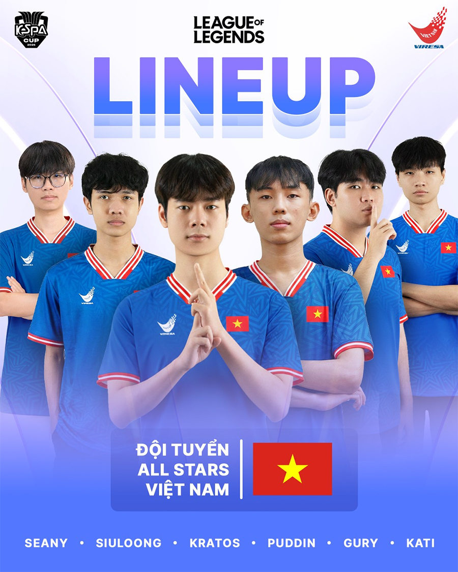 Đội tuyển All Stars Việt Nam đã chính thức chốt danh sách 6 tuyển thủ tham dự KeSPA Cup 2025, giải đấu tiền mùa giải hàng đầu của Liên Minh Huyền Thoại sẽ diễn ra tại Hàn Quốc từ ngày 6–14/12. Đội hình gồm 6 thành viên, được dẫn dắt bởi HLV Lê “SofM” Quang Duy, biểu tượng của LMHT Việt Nam và là nhân tố mang lại nhiều kỳ vọng về chuyên môn.