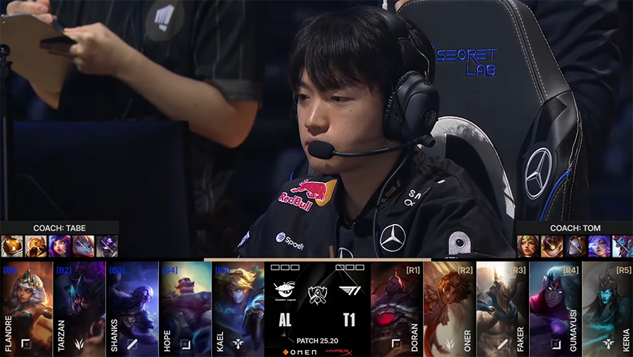 Đội hình chơi xoay quanh Draven của T1 đã không thể phát huy tác dụng khi chiến thuật của họ đã bị AL bắt bài. Gumayusi không thể tạo ra ưu thế ở khu vực đường dưới, thậm chí anh còn phải nằm xuống nhiều lần khi luôn là mục tiêu đầu tiên bị nhắm đến bởi các thành viên AL.