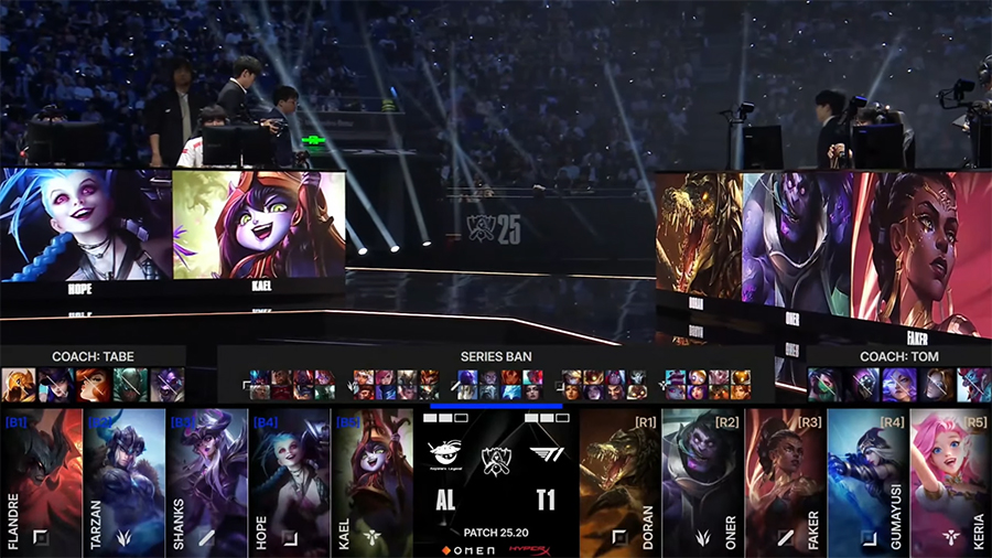 Anyone’s Legend nhập cuộc đầy tự tin trong ván quyết định. Họ kiểm soát thế trận, dẫn trước về vàng và liên tục thắng giao tranh. Tuy nhiên, T1 chứng minh tại sao họ là đội tuyển giàu kinh nghiệm nhất thế giới.