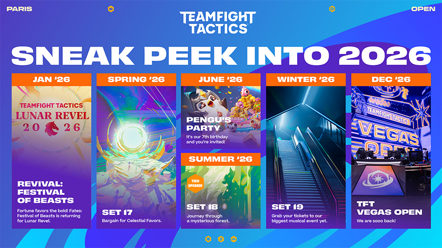 Như thường lệ, TFT Open sẽ khép lại năm 2026 vào tháng 12 tại Las Vegas, tiếp tục khẳng định DTCL là một trong những tựa game auto battler có hệ sinh thái esports bài bản nhất hiện nay.