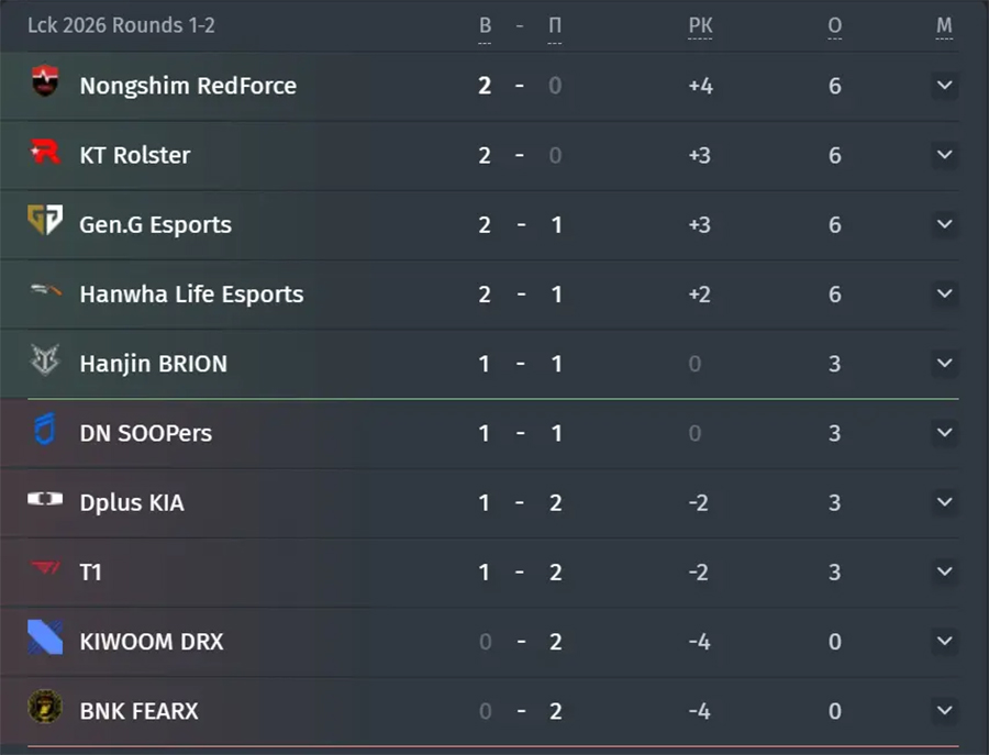 Sau ngày thi đấu này, Gen.G Esports và Hanwha Life Esports tạm thời dẫn đầu bảng với hai chiến thắng. Ngược lại, T1 và Dplus KIA đang đối mặt áp lực lớn khi cùng sở hữu thành tích 1 thắng – 2 thua, buộc phải cải thiện phong độ nếu không muốn sớm bị bỏ lại trong cuộc đua playoffs và giành vé dự MSI 2026.