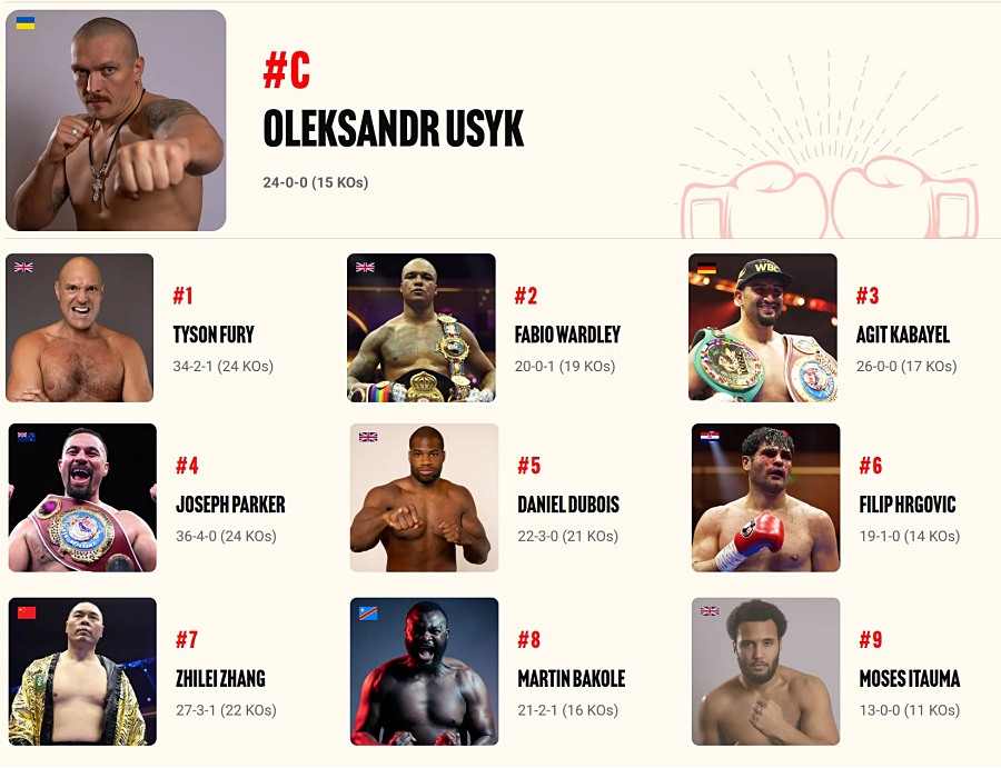 Thực tế, ở BXH uy tín hơn nhiều đó là của The Ring, Fabio Wardley hiện xếp số 2, sau Tyson Fury và nhà vô địch Usyk. Trong khi đó Joseph Parker rơi xuống thứ 4 và Dubois xếp thứ 5.