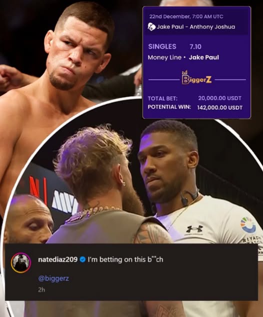 Mặc dù không phải là fan cuồng nhiệt nhất của Jake Paul, Nate Diaz vẫn đặt cược cho youtuber đánh bại Anthony Joshua. Tuần trước, Diaz đã viết trên X "Paul sẽ đánh bại Joshua".