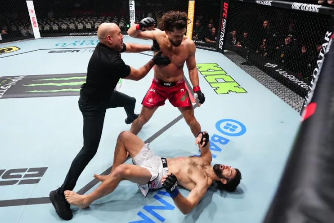 Không cần chiêu trò, không cần tính toán dài hơi—Ismail Naurdiev chỉ mất 1 phút 26 giây để tạo nên một trong những khoảnh khắc ấn tượng nhất UFC Qatar. Tay đấm người Áo trở lại hạng middleweight với phong thái lạnh lùng, tung một cú overhand phải hoàn hảo khiến Ryan Loder đổ sập ngay tại chỗ.