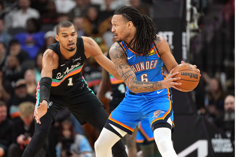 Trong trận đấu hôm 5/2 trên sóng ESPN, danh sách "bệnh binh" của Thunder dài dằng dặc, bao gồm các chủ lực như: Shai Gilgeous-Alexander (căng cơ bụng), Chet Holmgren (đau lưng), Alex Caruso, Jalen Williams, cùng 6 cầu thủ khác. Thunder chỉ còn đúng 8 người lành lặn và thua Spurs với tỷ số 108-116.