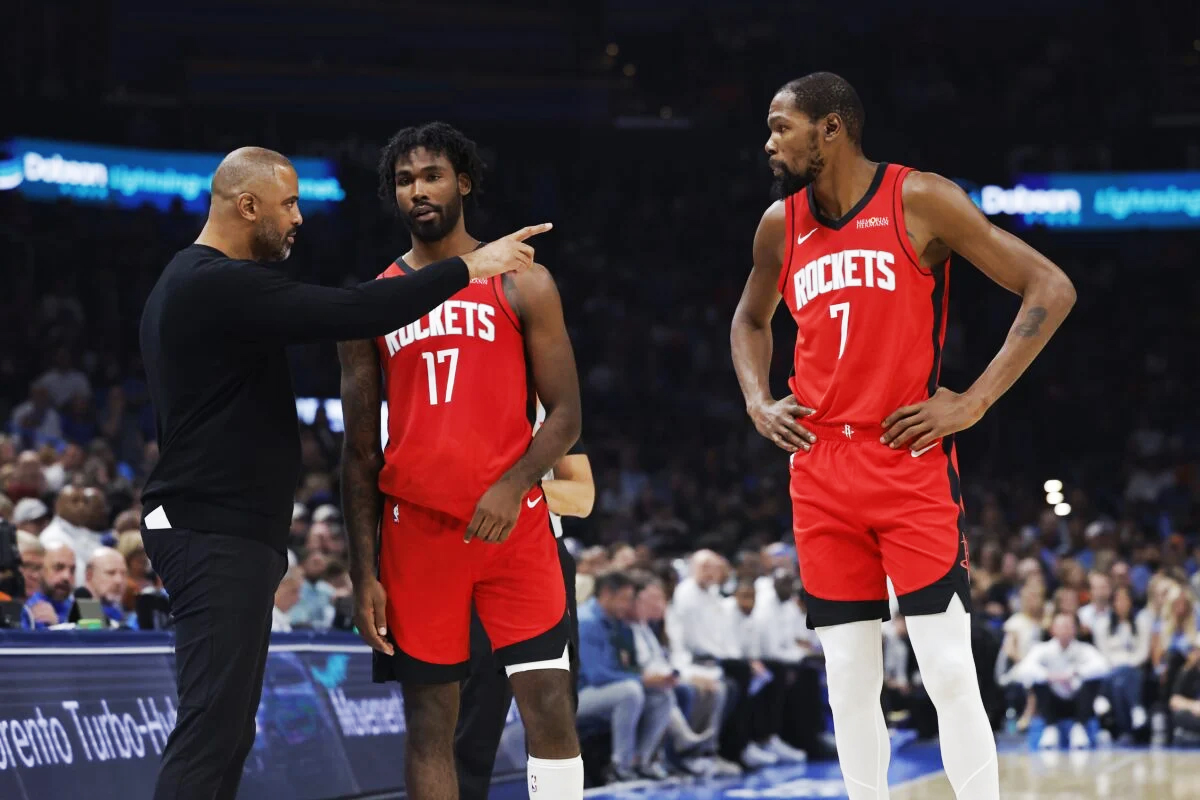 HLV Ime Udoka đã chỉ trích gay gắt các cầu thủ Rockets vì tinh thần thi đấu yếu đuối và sự phụ thuộc quá mức vào "lão tướng" Kevin Durant, dẫn đến việc đánh mất lợi thế 13 điểm và thua ngược trước Blazers.