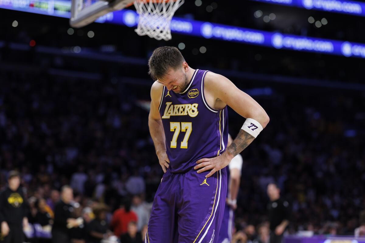 Luka Doncic dính chấn thương lưng và phải rời sân sớm trong hiệp 3. Dù nén đau trở lại, 39 điểm của anh không đủ giúp Lakers tránh khỏi thất bại trước Hornets.