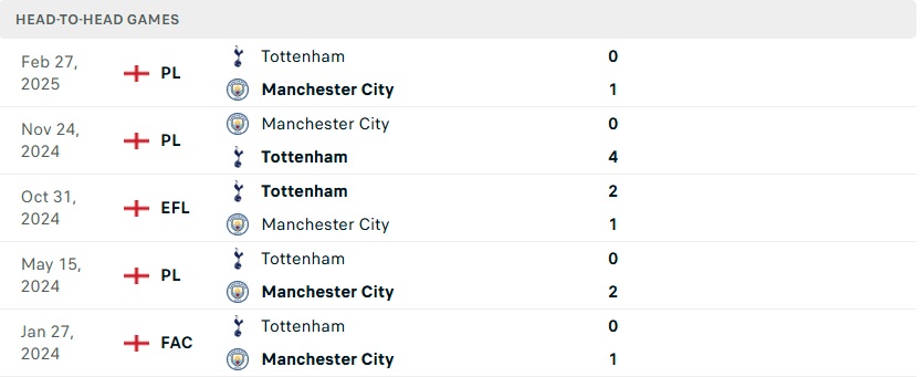 Tỷ lệ trận đấu: Man City thắng đến 4/5 trận gần nhất theo tỷ số châu Á. Tottenham không thắng 2/4 trận vừa qua.