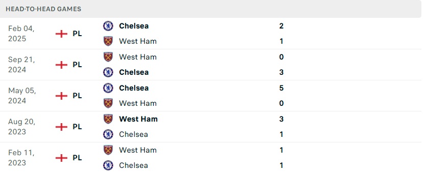 Tổng bàn thắng trong trận: Chỉ 1/6 trận gần đây của Chelsea vượt tổng số bàn thắng. 2/3 trận gần nhất của West Ham có từ 3 bàn trở xuống.