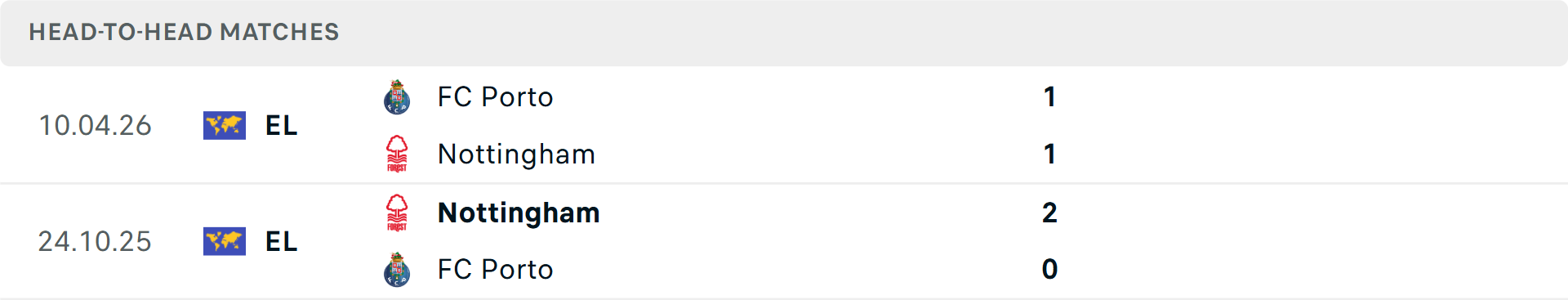 Lịch sử đối đầu Nottingham vs Porto