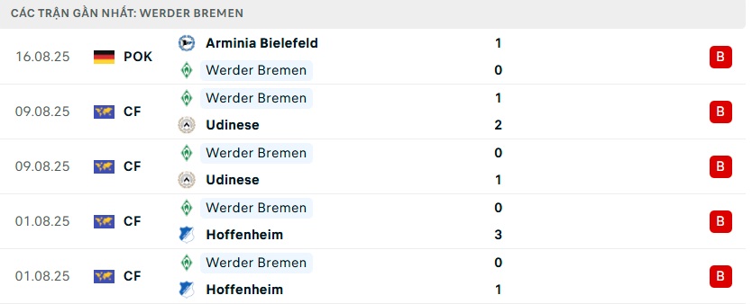 Phong độ bết bát đó khiến họ bước vào trận đấu chính thức ở Cúp QG với thất bại 0-1 trước Bielefed. Chuông báo động báo ngay với Bremen. Thế nên, ở trận ra quân Bundesliga, không nhiều người tin vào kết quả khả quan của họ khi làm khách trên sân của Frankfurt.