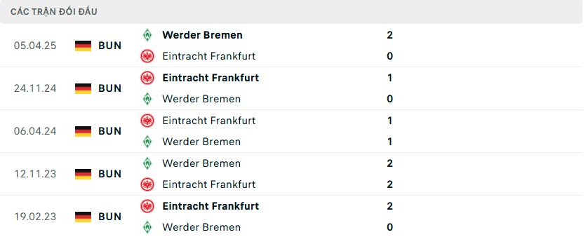 Phong độ và lịch sử đối đầu Frankfurt vs Bremen