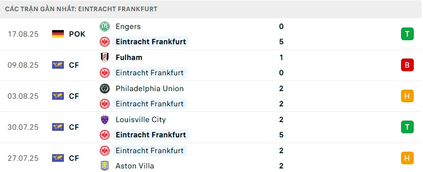 Đội chủ nhà chia tay tiền đạo chủ lực Ekitike nhưng cũng kịp mang về các ngôi sao khác thay thế là Jonathan Burkardt hay Ritsu Doan. Frankfurt có bước chạy đà khá tốt khi thắng Engers 5-0.