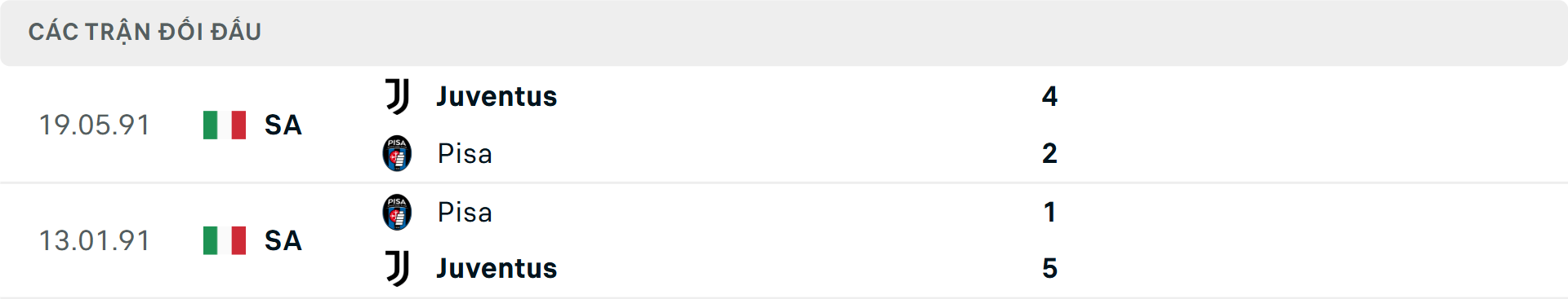 Lịch sử đối đầu càng củng cố niềm tin cho đội khách, khi Juventus chưa từng thua Pisa tại Serie A với thành tích 10 thắng, 4 hòa. Trong bối cảnh Pisa sa sút còn Juventus đạt điểm rơi phong độ, Bianconeri hoàn toàn có cơ sở để nối dài mạch thắng và khép lại năm 2025 bằng một chiến thắng thuyết phục.