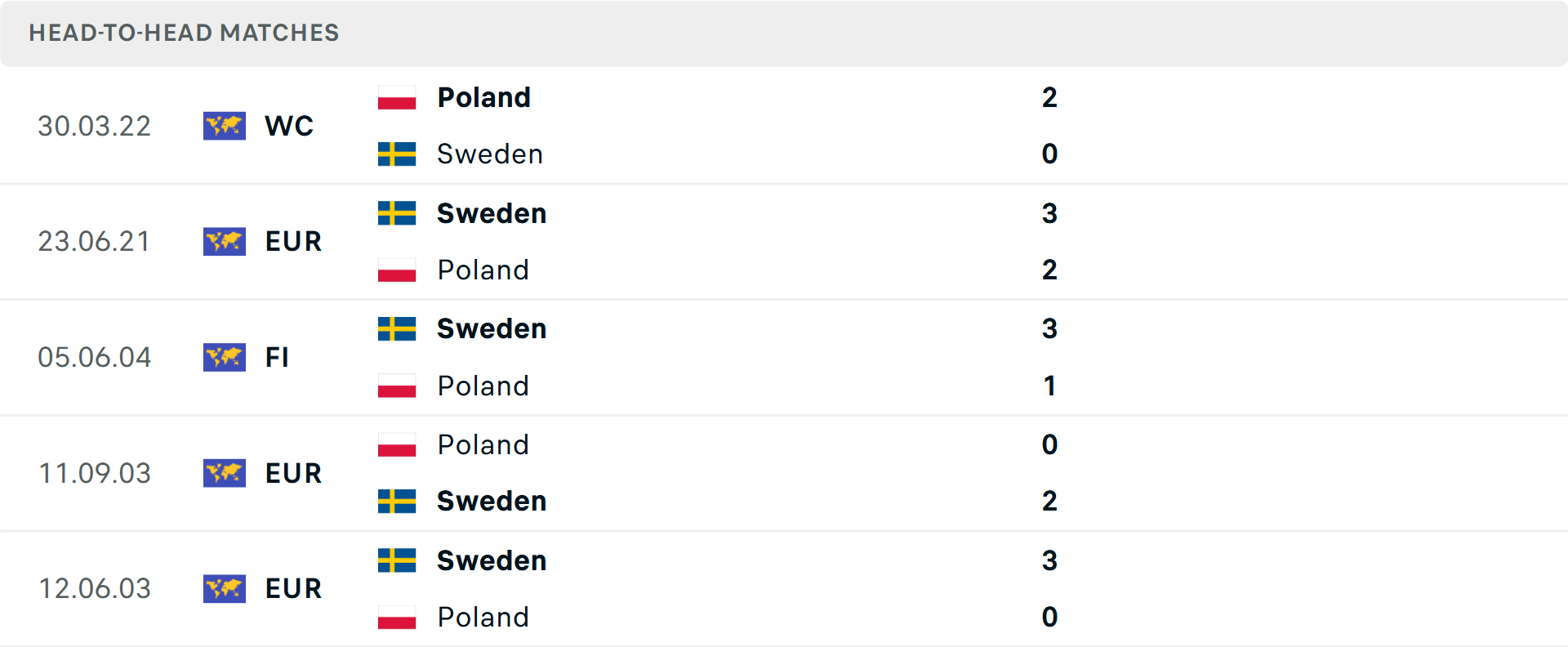 Lịch sử đối đầu Thụy Điển vs Ba Lan