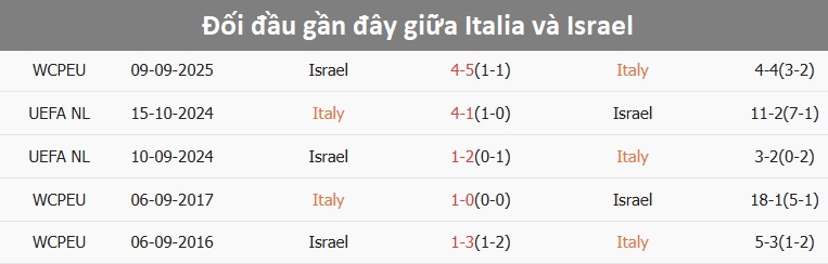 Phong độ và lịch sử đối đầu Italia vs Israel