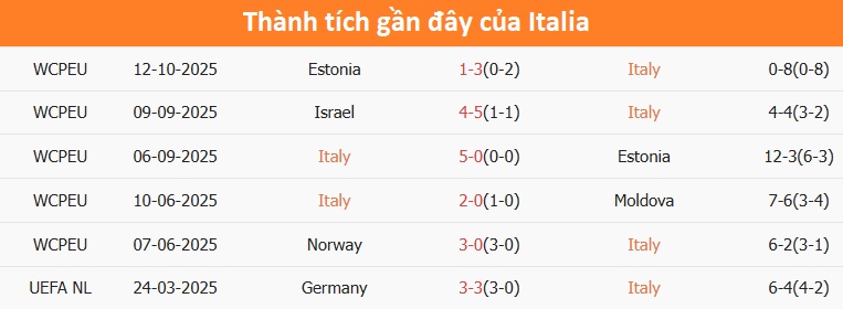 Phong độ Italia 6 trận gần nhất