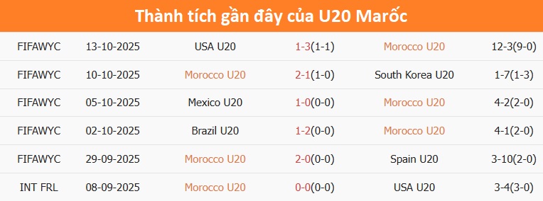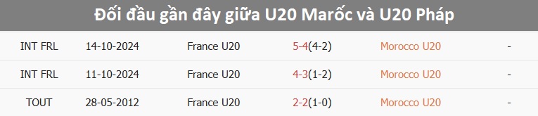 Lịch sử đối đầu U20 Marốc vs U20 Pháp