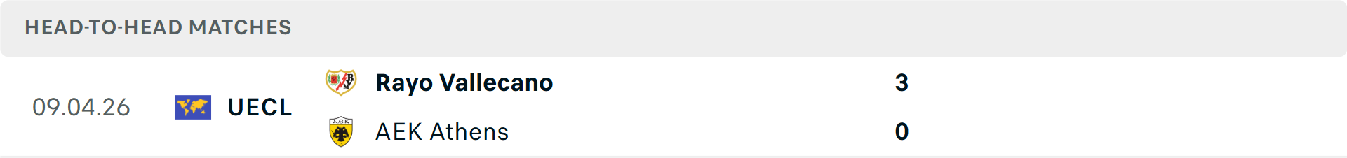 Lịch sử đối đầu AEK Athens vs Vallecano