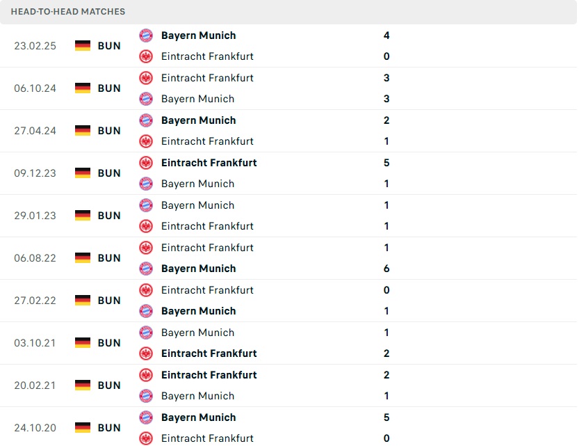Lịch sử đối đầu Frankfurt vs Bayern Munich
