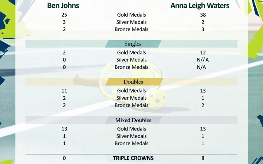 Họ liên tục gom về huy chương – phần lớn là vàng – phá vỡ hết kỷ lục này đến cột mốc khác, đồng thời đặt ra chuẩn mực quá cao cho thế hệ kế cận. Và mùa giải 2025 tiếp tục là minh chứng rõ ràng nhất cho vị thế không thể tranh cãi của Ben Johns và Anna Leigh Waters trên đỉnh cao pickleball thế giới.