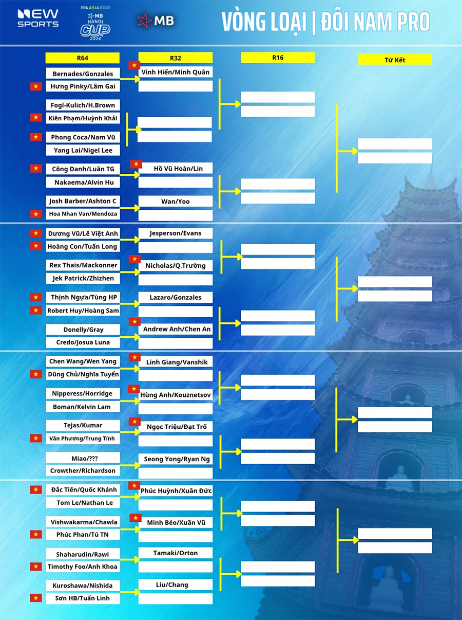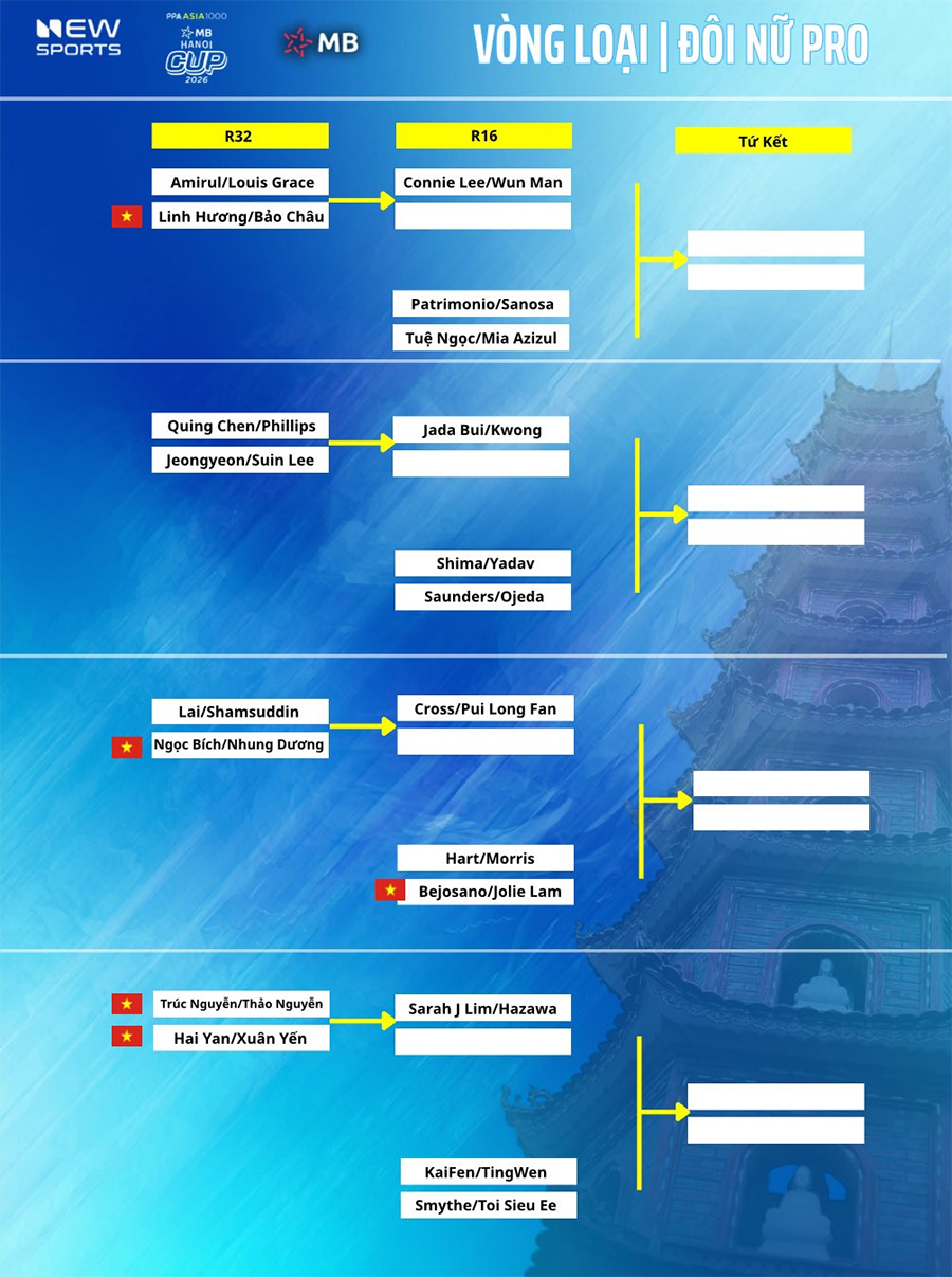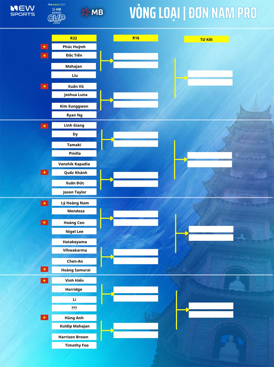 Lịch thi đấu vòng loại PPA Tour Asia Hanoi Cup 2026: