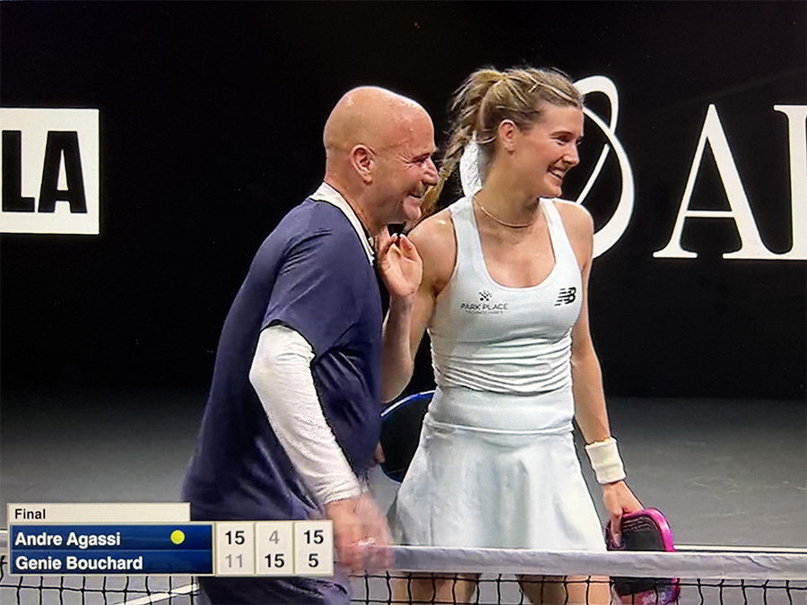 Tâm điểm của sự kiện là trận đôi nam nữ giữa hai cặp Agassi/Blake và Waters/Bouchard, thi đấu đến 21 điểm. Trận đấu diễn ra với chất lượng chuyên môn cao, những pha bóng bền, các tình huống dink kéo dài và nhiều điểm số nghẹt thở.