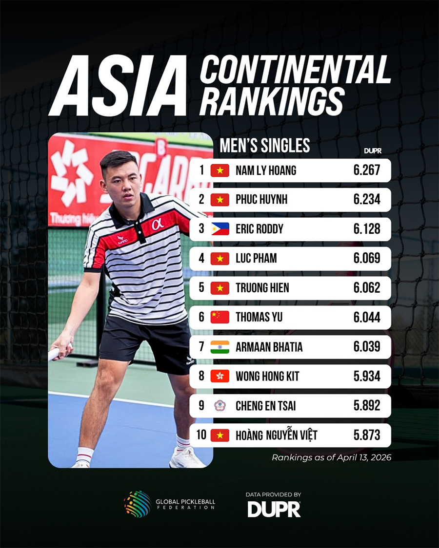 Chiếm một nửa Top 10 châu Á là thành tích không thể xem nhẹ. Đây không chỉ là dấu mốc về mặt thứ hạng, mà còn là lời khẳng định rằng pickleball Việt Nam đang bước vào giai đoạn phát triển thực chất, với tham vọng và tiềm lực rõ ràng.
