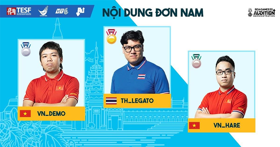 Ở nội dung đơn nam, Demo mở màn hoàn hảo với hơn 1,8 triệu điểm, nhưng sang ván hai anh tụt xuống hạng ba, nhường lợi thế cho Legato. Ván cuối, Demo bứt lên mạnh mẽ, song một lỗi nhỏ ở cuối bài đã khiến anh vuột mất tấm HCV trong gang tấc.