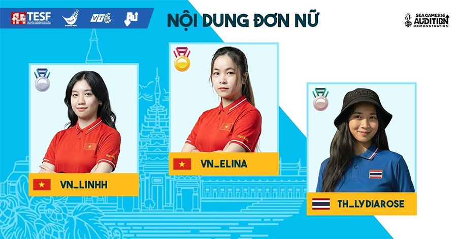 Chỉ sau đó không lâu, Lê Thị Hoài Phương "Elina" tạo ra sự vượt trội hoàn toàn trong vòng chung kết nội dung đơn nữ Esports môn Audition - nội dung đơn nữ để giành về tấm HCV cho Đoàn TTVN tại SEA Games 33. Tô Ý Linh cũng xuất sắc giành HCB.