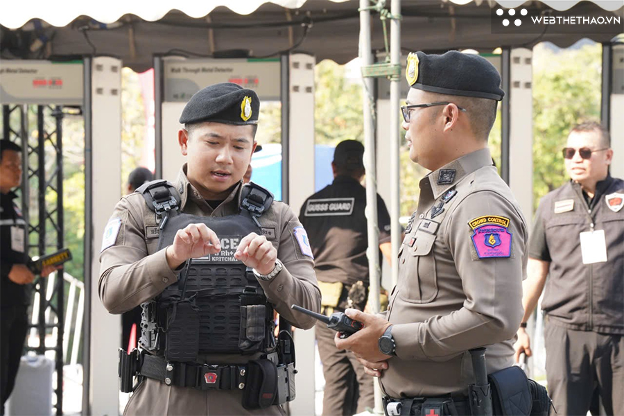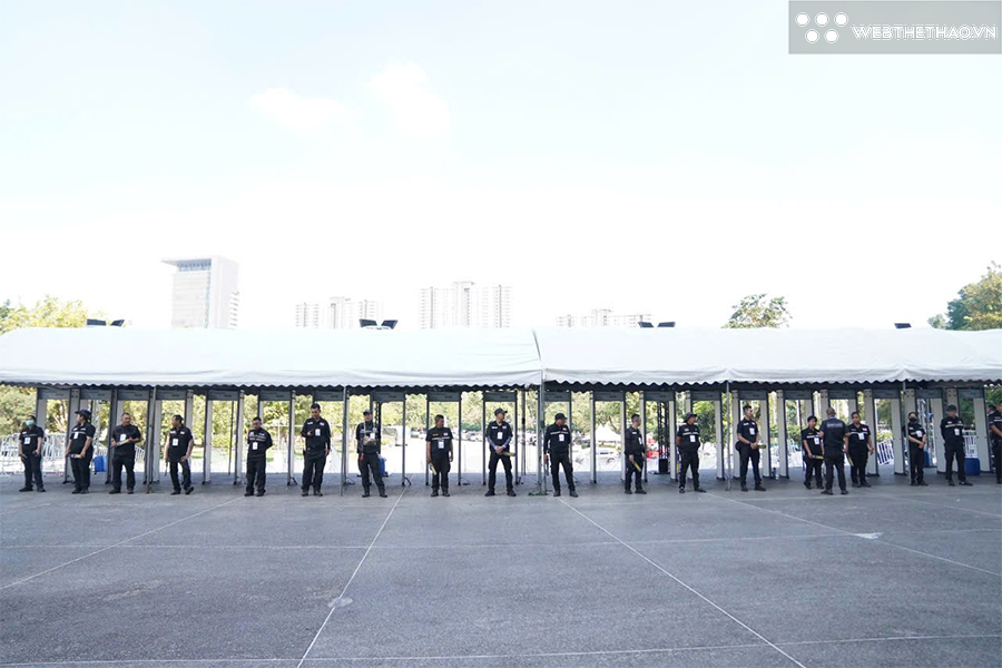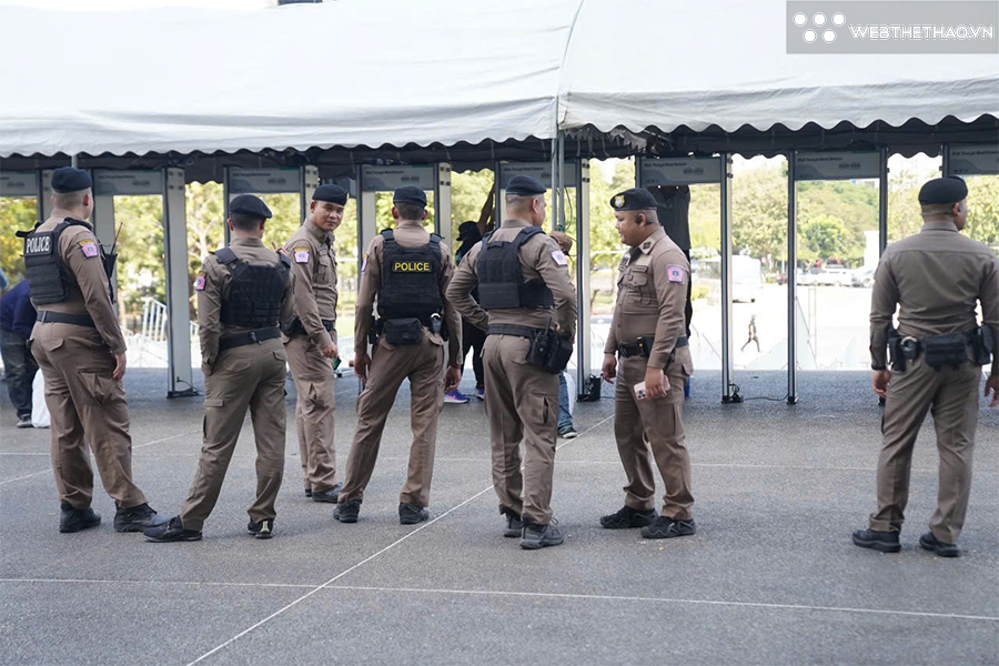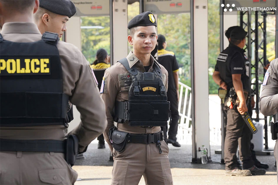Tại sân vận động Rajamangala, địa điểm diễn ra trận đấu U22 Việt Nam vs Lào SEA Games 33, công tác an ninh cũng được thắt chặt tối đa khi lực lượng bảo vệ được bố trí chặt chẽ, từ vòng ngoài phía trước SVĐ cho đến các khu vực trong sân.