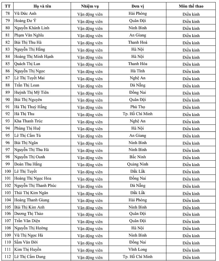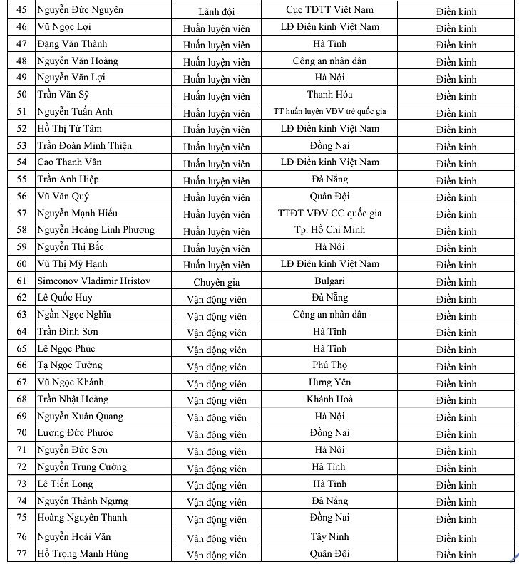 DANH SÁCH ĐỘI TUYỂN ĐIỀN KINH VIỆT NAM DỰ SEA GAMES 2025
