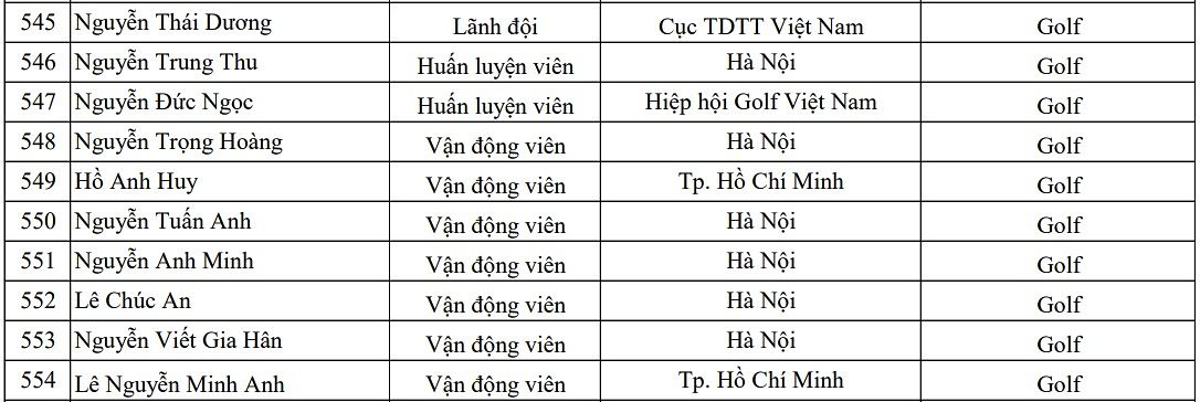 Dưới đây là danh sách đội tuyển golf Việt Nam tham dự SEA Games 2025