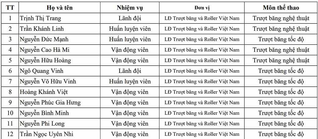 Dưới đây là danh sách đội tuyển trượt băng Việt Nam dự SEA Games 2025