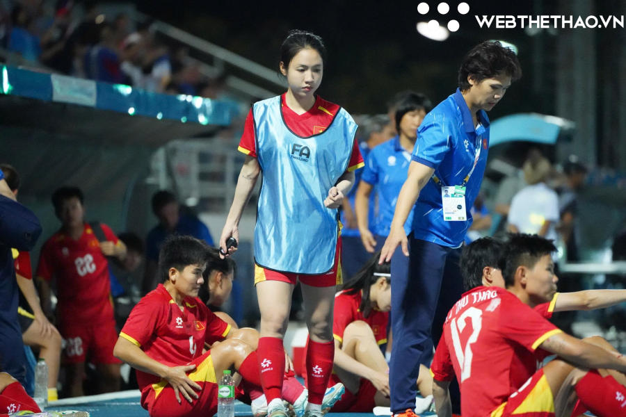 Nỗi buồn hiện rõ lên gương mặt của các cô gái đội tuyển bóng đá nữ Việt Nam và cả ban huấn luyện sau trận thua cay đắng trước tuyển nữ Philippines.