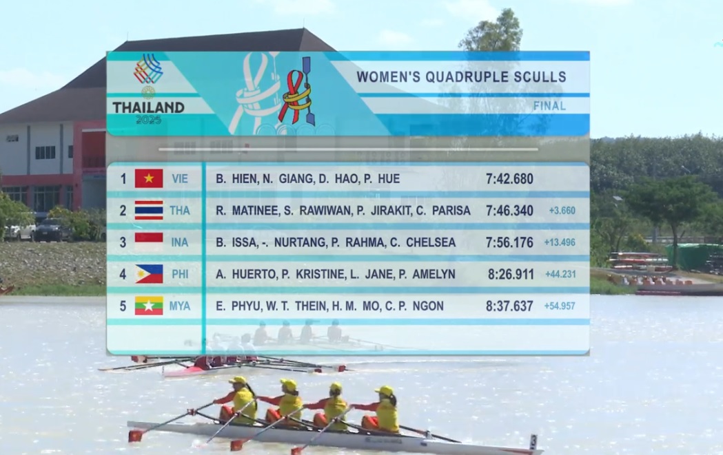 Đội tuyển đua thuyền Việt Nam đã xuất sắc giành tới 3 chiếc huy chương vàng trong sáng ngày 17/12 ở 4 nội dung thi đấu SEA Games 33.