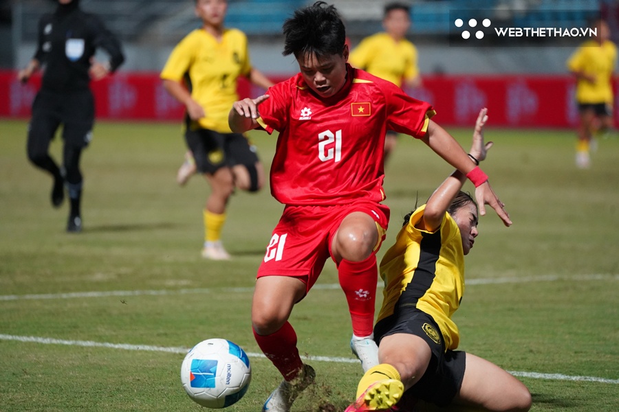 “Cơn lốc đường biên” Thanh Nhã không thể ghi bàn trong thắng lợi 7-0 của đội tuyển nữ Việt Nam trước Malaysia thuộc trận ra quân SEA Games 33.