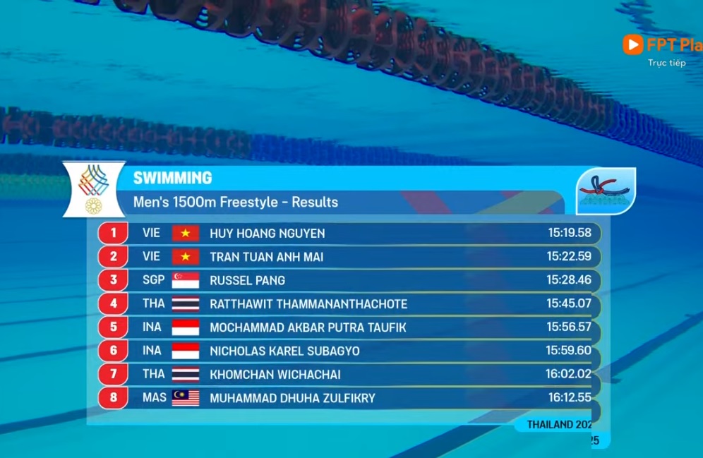 Như vậy, sau Quang Thuấn - Hưng Nguyên chia nhau vị trí cao nhất ở nội dung 400m tự do nam, đến lượt Huy Hoàng và Tuấn Anh cũng đem vinh quang về cho bơi Việt Nam bằng chiếc huy chương vàng và huy chương bạc.