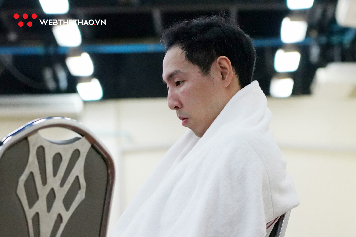 Gần 10 phút đồng hồ sau khi trận đấu kết thúc, khu vực nghỉ ngơi của đội tuyển Việt Nam ở phòng kỹ thuật chìm trong một bầu không khí nặng nề.