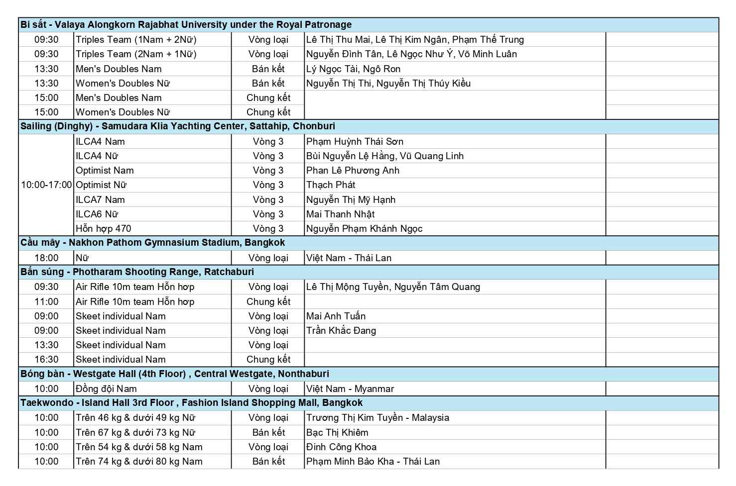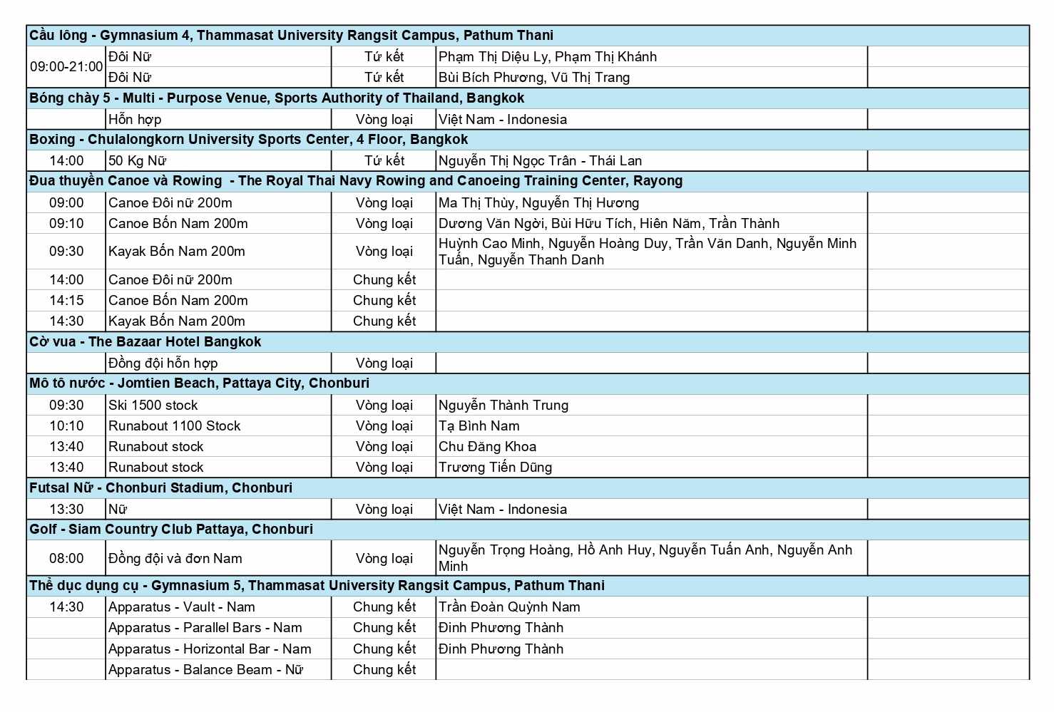 Lịch thi đấu Đoàn Thể thao Việt Nam ở SEA Games 33 ngày thi đấu thứ hai, 11-12, chứng kiến nhiều đội tuyển thể thao mạnh của chúng ta ra sân săn vàng.