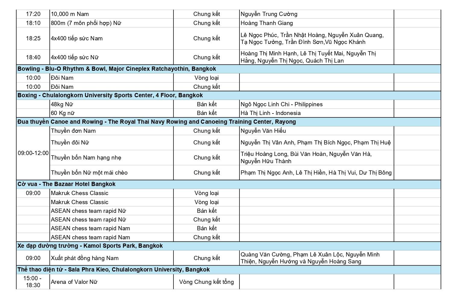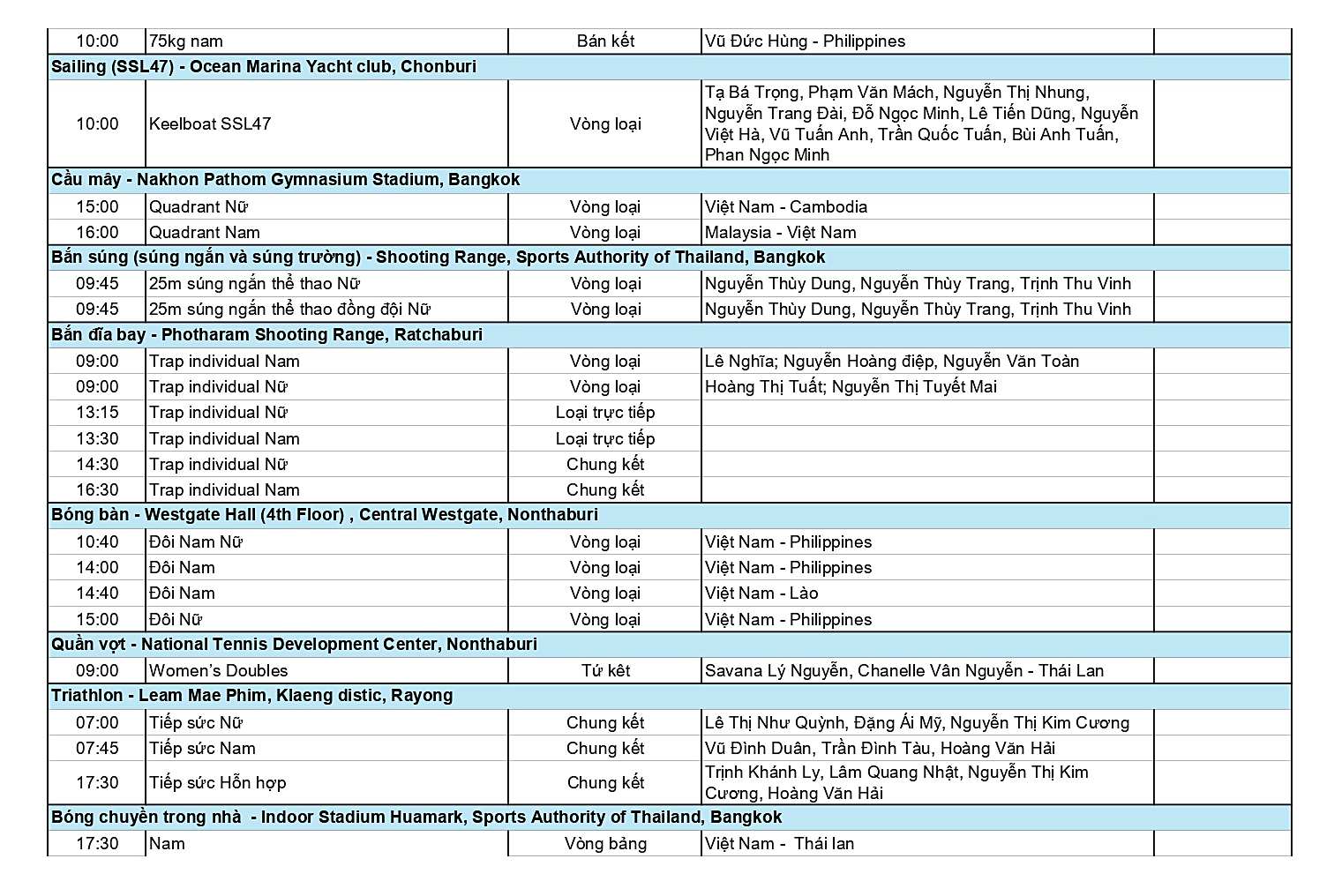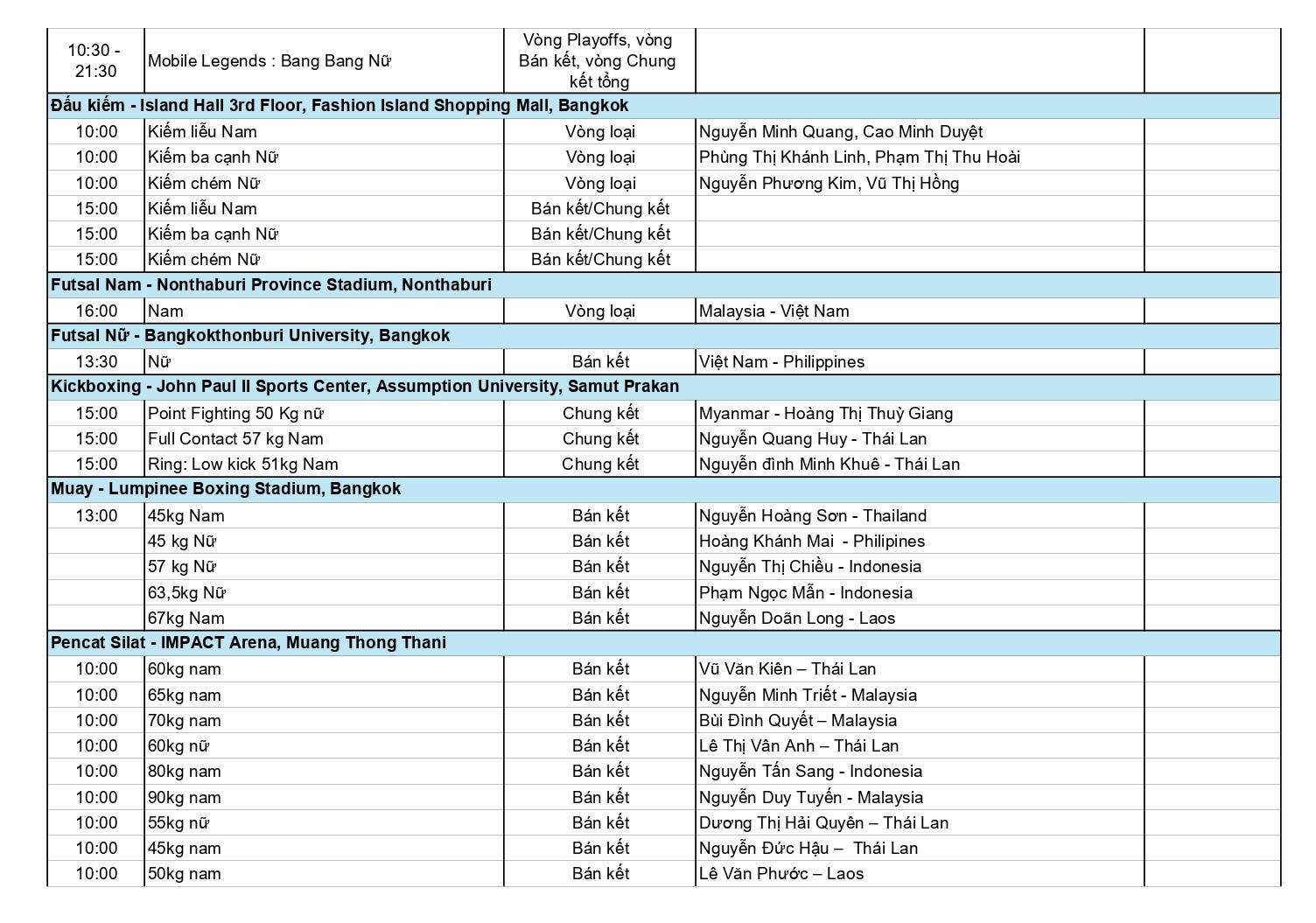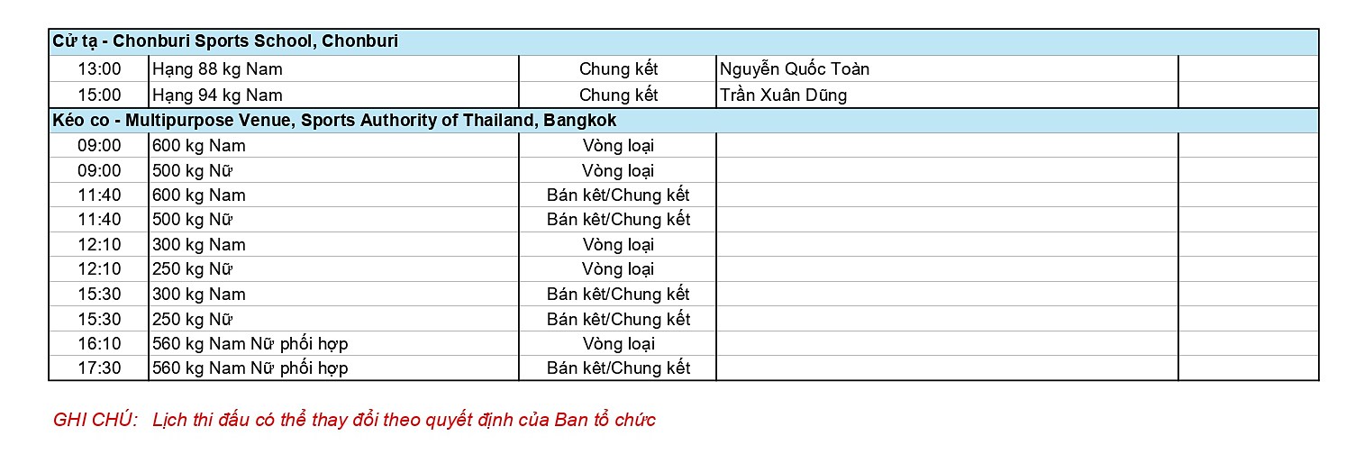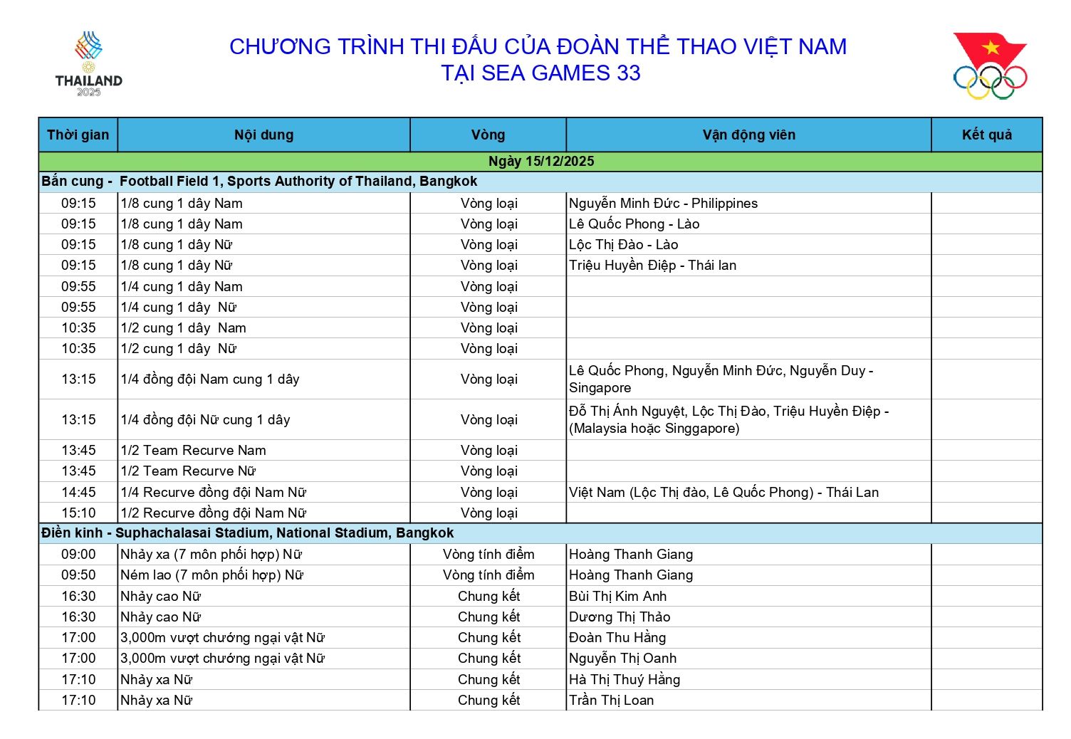 Dưới đây là chi tiết Lịch thi đấu Đoàn Thể thao Việt Nam ở SEA Games 33 ngày 16-12