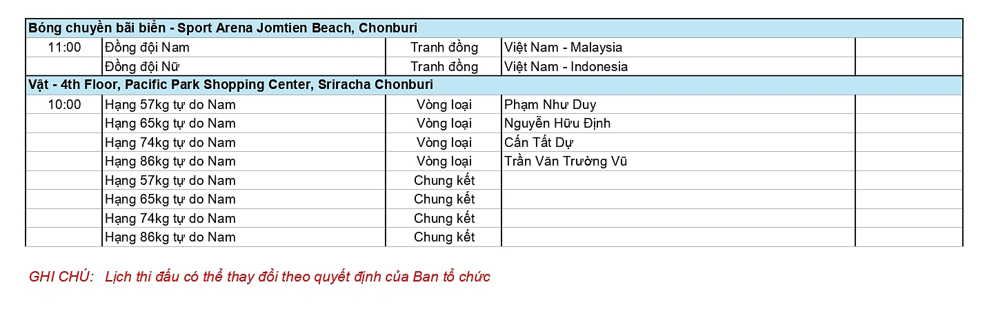 Lịch thi đấu Đoàn Thể thao Việt Nam ở SEA Games 33 ngày 19-12.