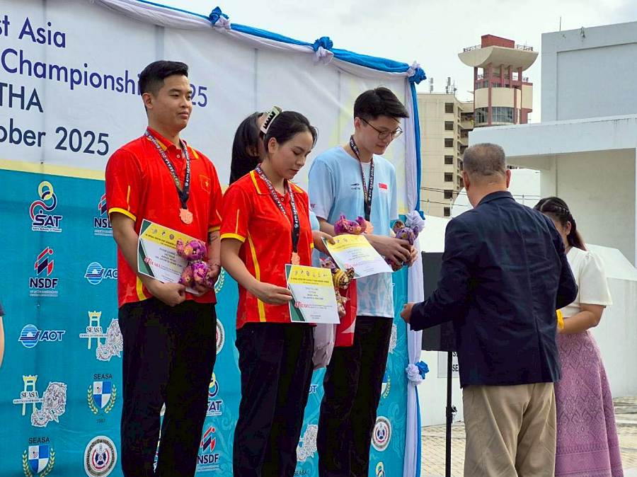 Ở nội dung sở trường 10m súng hơi ngắn vừa kết thúc, Phạm Quang Huy xếp thứ 3 chung cuộc, qua đó có tấm HCĐ thứ hai ở giải Vô địch Bắn súng Đông Nam Á 2025.