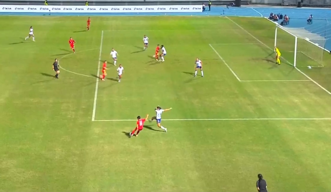 Tình huống gây tranh cãi xảy ra ở phút 29. Trong pha lên bóng bên cánh phải, Ngân Thị Vạn Sự ngoặt bóng rồi tạt vào cho Bích Thùy tron vòng cấm bay người đánh đầu cận thành vào lưới. Trong lúc Bích Thùy ăn mừng, trọng tài biên căng cờ còn trọng tài chính thổi còi báo việt vị.
