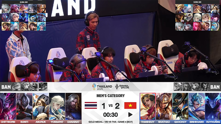 Đội tuyển Liên Quân Thái Lan tiếp tục phát huy ưu thế đánh sớm của mình khi hoàn toàn áp đảo Việt Nam trong những phút đầu. Đội chủ nhà đã rất gần với chiến thắng khi đã ép sâu Việt Nam với sự xuất sắc của Nunu, tuyển thủ giàu kinh nghiệm và được đánh giá là nguy hiểm nhất bên phía Thái Lan.