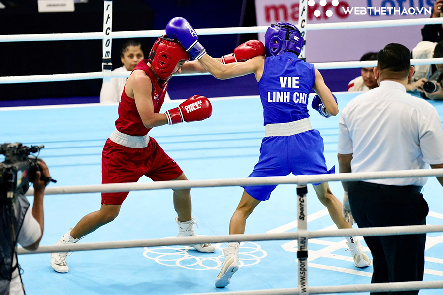Võ sĩ Ngô Ngọc Linh Chi (giáp xanh) (Ảnh: Việt Long)
